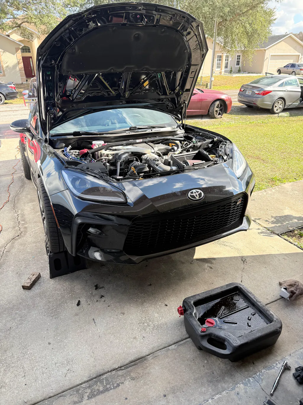 Under normal driving, oil changes are recommended every 6,000–7,500 miles. For track days or aggressive driving, changing oil more frequently (every 3,000–5,000 miles) helps protect engine life.